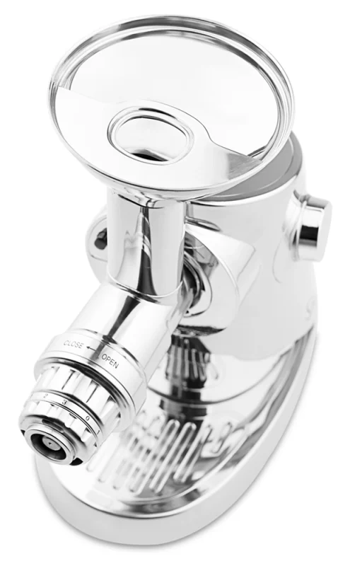 Expand versatility with the Sana 702 Oil Extractor — a solid stainless-steel attachment powered by the 929’s motor to produce cold-pressed oils from seeds and nuts.